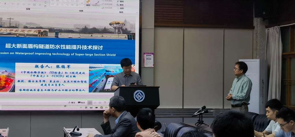 随后,在世纪楼14楼会议室张稳军教授为我院师生作了题为《超大断面盾构隧道防水性能提升技术探讨》的学术论坛报告。报告介绍了其团队在盾构隧道防水性能提升、掘进精准动态纠偏、结构安全与智能评估三方面取得的研究成果。报告会由新葡的京集团35222vip副院长雷明锋教授主持。
