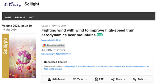 近日,新葡的京集团35222vip杨伟超副教授和香港理工大学邓锷博士及其合作者团队以中南大学为第一单位发表题为“Mitigating inflow acceleration effects in twin mountains using air-jets: emphasis on anti-wind for high-speed railways”的研究论文。该研究成果被美国物理学联合会出版社杂志《流体物理学》(Physics of Fluids)作为编委推荐文章发表,并被美国物理学联合会《科学之光》(Scilight)专题文章采访报道。
