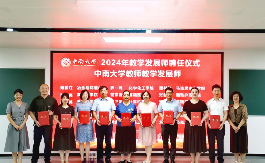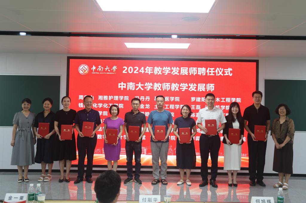 会上,为在2024年教学竞赛国赛、省赛及学校“三十佳”课堂教学竞赛中获奖的教师颁发荣誉证书,并为36名中南大学教师教学发展师颁发聘书。其中,我院孙晓、杜金龙、罗建阳、陈嘉祺4位老师受聘为学校教师发展师,宋卫民、夏晓东、倪雪倩3位老师作为“三十佳”课堂教学竞赛教师参与颁奖典礼。祝贺以上获奖教师,希望我院教师再接再厉,在教学成果方面取得更大突破。