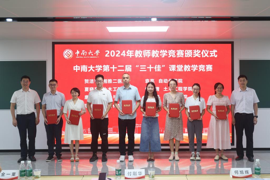 9月10日,在第40个教师节到来之际,中南大学教师教学竞赛颁奖典礼暨教师教学发展专题研讨会在科教南楼505举行。校党委副书记、工会主席付刚华,副校长何旭辉,2024年教学竞赛国赛、省赛及学校“三十佳”课堂教学竞赛获奖教师,各二级单位教师代表参加会议。