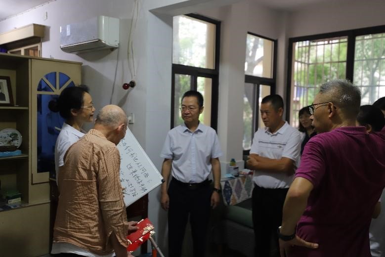 岁老根弥壮,阳骄叶更阴。张教授站立着迎接大家,连连感谢组织的关心,温暖、喜悦和感动写满了他的脸。大家关切地询问了张教授的健康状况。令人欣慰的是,张老虽已百岁高龄,但依然精神矍铄,思维敏捷。