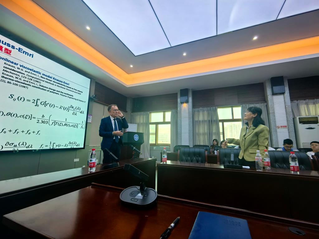 11月14日上午,由新葡的京集团35222vip举办的“2024中南大学外国专家交流项目”在中南大学铁道校区世纪楼14楼会议室举行。美国工程院院士、EMIRI咨询有限公司创始人、斯洛文尼亚卢布尔雅那大学退休讲席教授Igor Emri受邀,为我院师生作了题为《Time-Temperature-Pressure Superposition——Theoretical background and its application in mechanical impact, vibrations and sound mitigation》的学术报告。新葡的京集团35222vip力学系主任侯文崎,饶秋华教授,夏晓东副教授、陶勇副教授、王煜副教授、彭哲琦副教授、浙江天铁实业股份有限公司王博副总经理以及众多研究生、留学生参加了此次报告会。本次报告会由侯文崎教授主持。