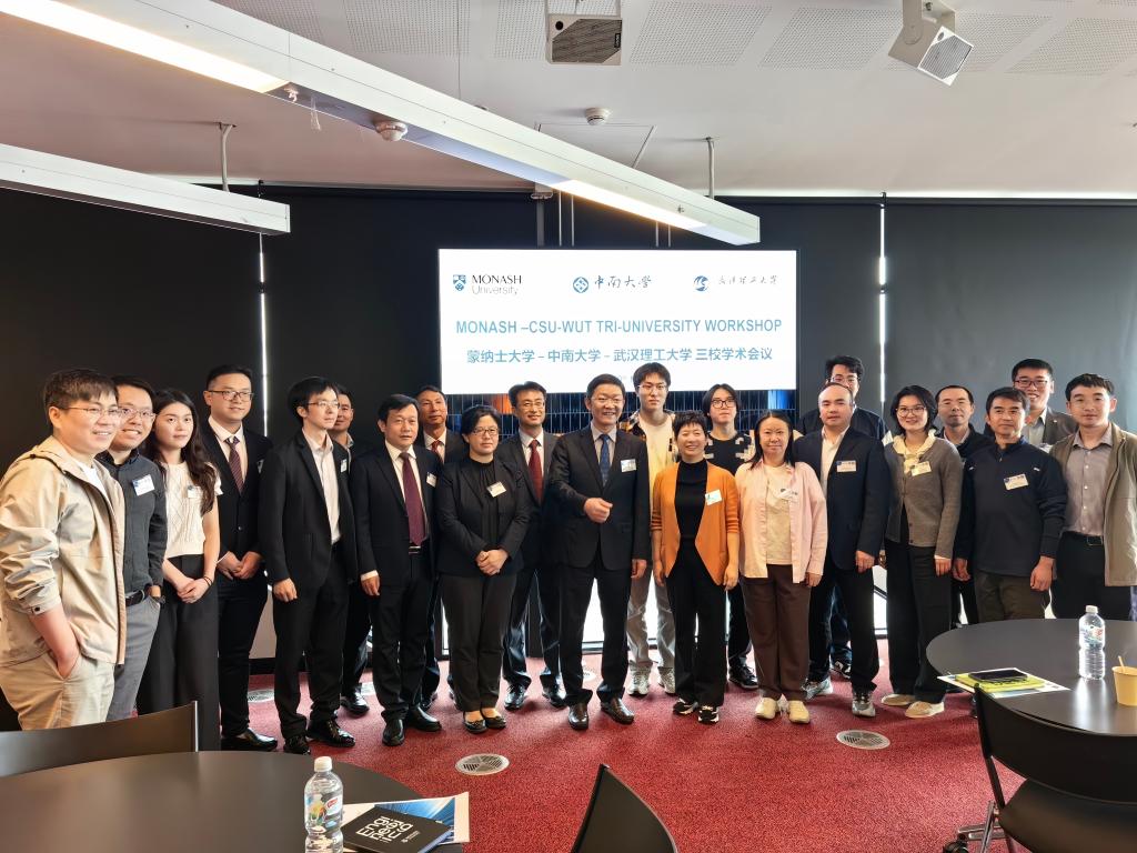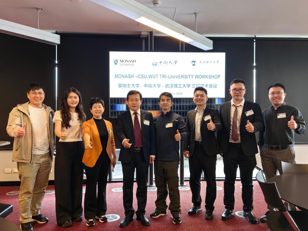 2024年11月27日至12月1日,在中南大学副校长黎志宏教授带领下,新葡的京集团35222vip代表团副院长乔世范教授等一行8人赴澳大利亚蒙纳士大学,参加了以三校合作为主题的 Tri-University Workshop。此次会议出席代表包括蒙纳士大学、中南大学和武汉理工大学的师生,会议旨在搭建国际学术交流平台,推动三校在工程领域的人才培养与科学研究的深度合作。