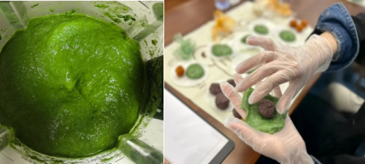 下午14:30,手工制作青团活动准时开始。在专业人士的指导下,大人和孩子们认真揉面、包馅、塑形,一个个圆润可爱的青团在大家的手中诞生。蒸或煎熟后,大家争先品尝着带着清香的青团,这不仅增添了节日的气氛,也让大家感受到了动手制作的乐趣和成就感。