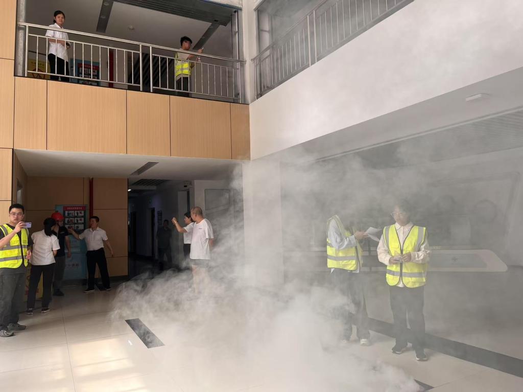 随着火灾警报系统骤然响起,现场应急处置小组迅速进入实战状态,各岗位人员按预案分工协同作战,有序引导师生紧急疏散。在疏散引导员的指挥下,全体人员严格遵循“就近撤离、科学逃生”原则,运用湿毛巾掩口鼻、低姿前行等火场逃生技巧,沿指定安全通道快速撤离。短短数分钟内,楼内人员全部安全抵达室外集合点,整个过程高效有序,充分展现了学院应急响应机制的实效性。