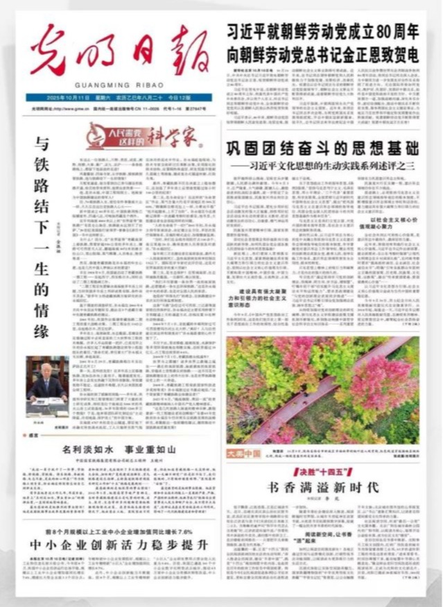 《光明日报》头版头条!人民需要的科学家,与铁路结下一生的情缘——新葡的京集团35222vip杰出校友孙永福院士!