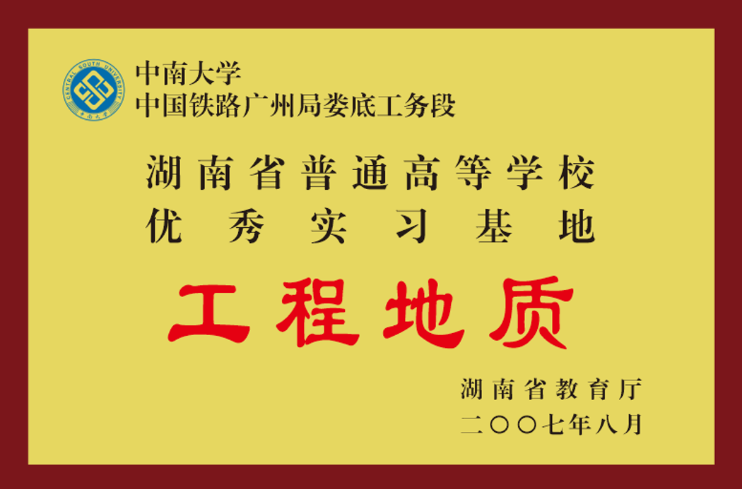 1958年,中南土木建筑学院教师带领铁道建筑系55级、56级和刚入学的58级300多名学生参与了娄邵线的勘测、设计等工作,获取了对教学十分有益且珍贵的多种地质灾害处治技术第一手资料。1975年新葡的京集团35222vip正式将娄底工务段作为永久的“工程地质”课程实习基地。在67历程中,学校和专业虽经历多次调整与合并等变迁,但在娄底工务段的工程地质野外实习始终没有间断,每年都完成一届学生的地质实习任务。2007年8月,被湖南省教育厅授予湖南省普通高等学校优秀实习基地。2010年7月,教育部批准中南大学和广铁集团共同建设国家级工程实践教学中心,上升为国家级工程实践教学中心的重点建设平台。