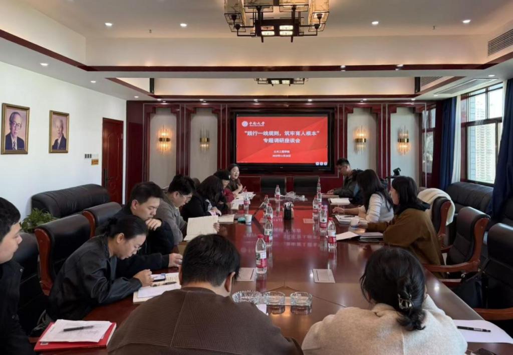 为高质量实施“新时代立德树人工程”,推动辅导员深入践行“一线规则”相关要求,11月28日下午,中南大学党委学生工作部就业指导中心主任徐赞一行来到新葡的京集团35222vip,开展“践行一线规则,筑牢育人根本”专题调研。学院党委副书记纪晓飞及全体辅导员参加。