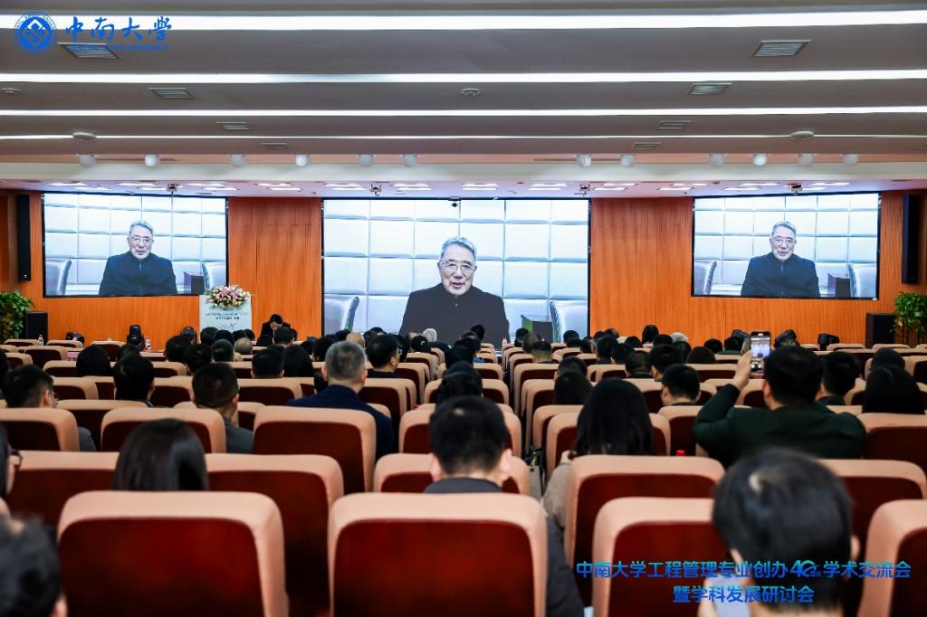 中国工程院院士何继善以视频方式向本次会议的召开表示祝贺,并向大会赠送题词“卌载芳华 智启新章”。何继善院士在视频讲话中讲到,中南大学工程管理专业始终紧扣国家发展的脉搏,秉承经世致用的优良传统,为国家的基础设施建设、重大工程项目,培养了一大批具有工程技术根基、跟现代管理智慧相融合的杰出人才。他希望工程管理专业未来能够继续站在科技的前沿,勇担时代使命,进一步深化与土木、信息、能源、环境等多个学科的交叉融合,构建面向未来的卓越工程管理人才培养的新体系。