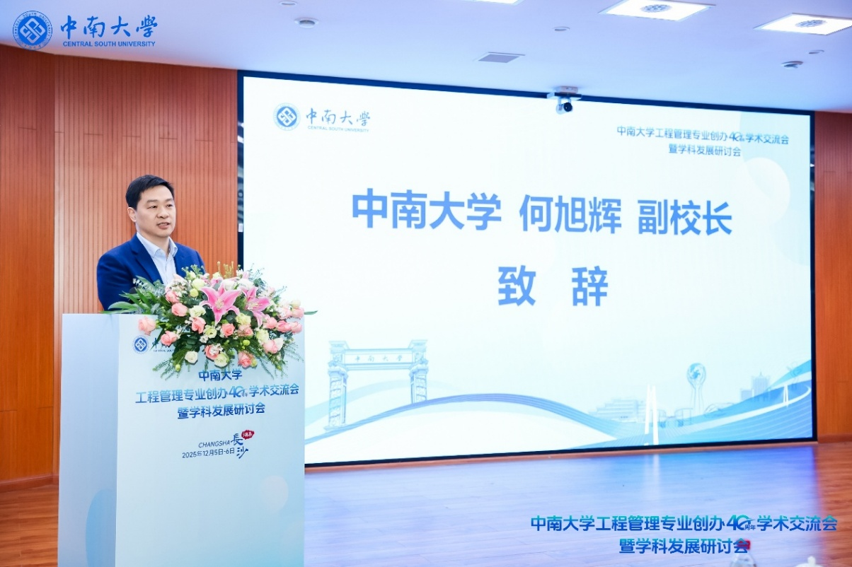 开幕式上首先播放了专业创办四十周年纪念视频,系统回顾了专业创办以来的发展历程。随后,中南大学党委常委、副校长何旭辉致辞,向工程管理专业创办四十周年表示热烈祝贺,对长期关心支持中南大学发展的各位校友和各界人士表示衷心感谢。他表示,四十年来,工程管理专业培养了一大批懂技术、擅管理的复合型人才,为我国铁路建设发展做出了巨大贡献。希望工程管理专业抓住人工智能浪潮机遇,积极探索“智能技术+工程管理”,充分利用校友资源,进一步把工程管理专业做强、做精。