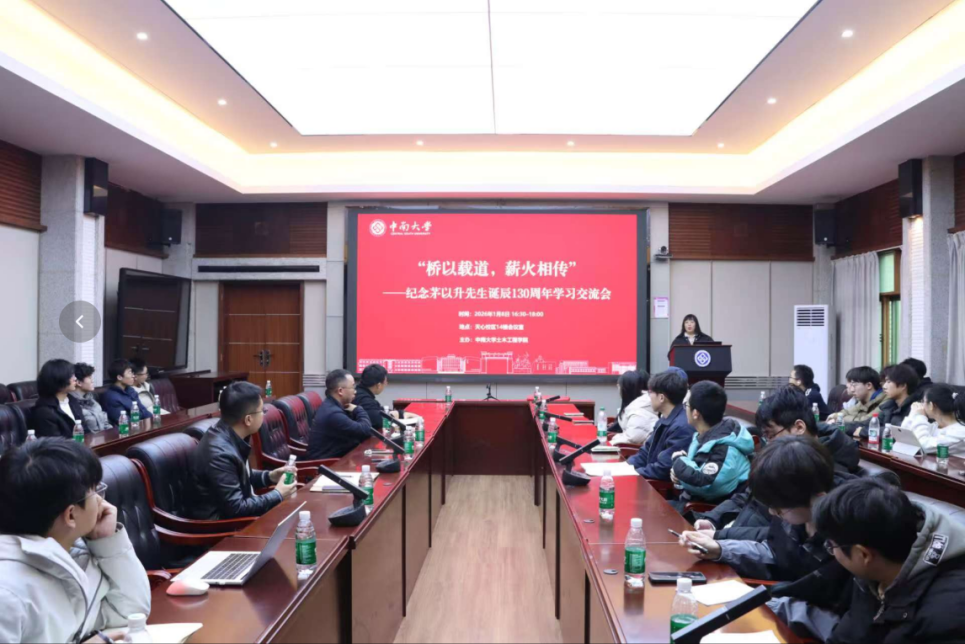 为深切缅怀我国杰出的土木工程学家、桥梁专家、工程教育家茅以升先生,弘扬其“爱国、科学、奋斗、奉献”的崇高精神,2026年1月8日下午,新葡的京集团35222vip在天心校区世纪楼14楼会议室隆重举行纪念茅以升先生诞辰130周年学习交流会。学院党委副书记纪晓飞、茅以升班班导师滕继东、魏晓军、严磊、学工办辅导员以及2022级、2023级、2024级茅以升班学生代表共计50余人参会,师生齐聚一堂,共同追忆先贤事迹,感悟桥梁人生,凝聚奋进力量。