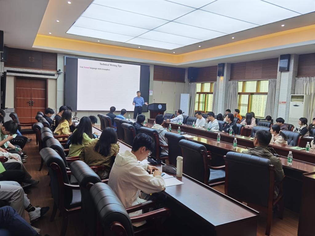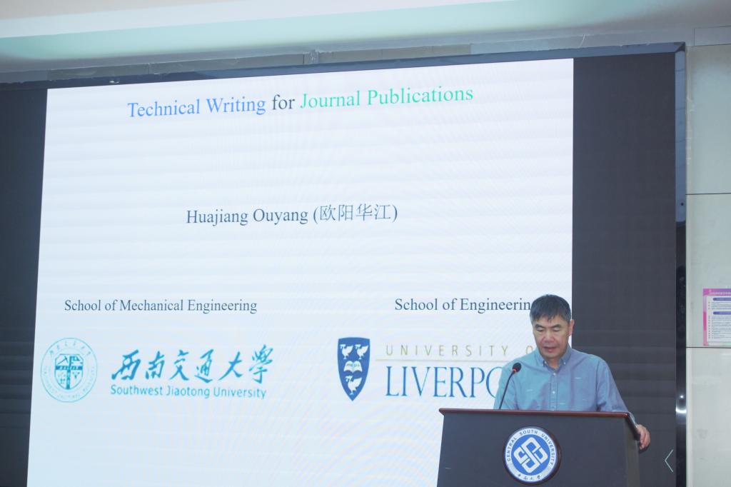 报告共分两场。在第一场报告中,欧阳华江教授以“Technical Writing for Journal Publications”为主题,结合自己丰富的科技论文写作经验和担任Journal of Sound and Vibration 和 Mechanical Systems and Signal Processing期刊责任编辑的经历,详细介绍了科技论文各组成部分的内容特点、形式结构和写作方法,以及稿件投稿后的处理流程,最后分享了一些普遍存在的科技论文语言问题案例。