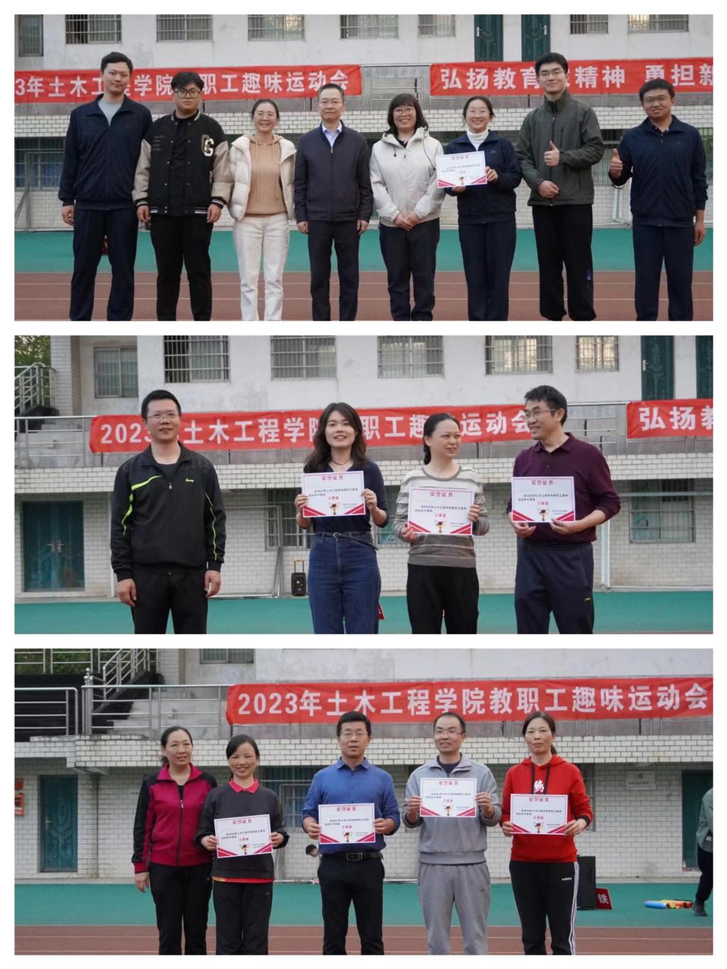 经过激烈角逐,学办代表队获得本次教职工趣味运动会团体一等奖,建工系、工管系、隧道系代表队获团体二等奖,道路系、高铁工程研究中心、检测中心、岩土系代表队获团体三等奖。