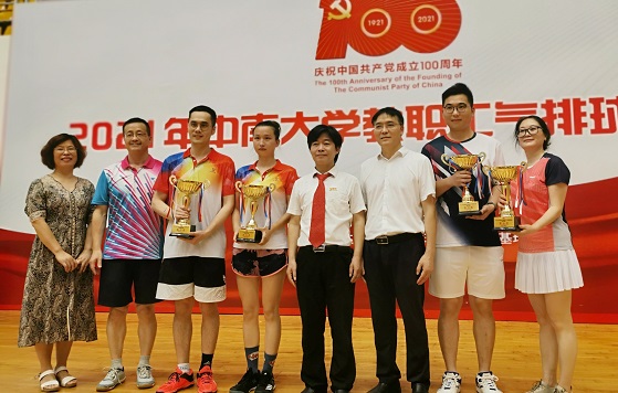 教职工气排球比赛在校工会领导的见证和强力组织下逐渐落下帷幕,我院男女排队员代表我院获颁各个奖项,队员们拼搏进取,团结奋进的精神也受到了校工会部门领导的认可、肯定和表彰。队员们纷纷表示,希望工会组织更多类似团体比赛项目,切实增强教师们利于科研生产工作之余时间充分锻炼身体,增强学院教职工凝聚力和向心力,以优异成绩庆祝中国共产党成立100周年。