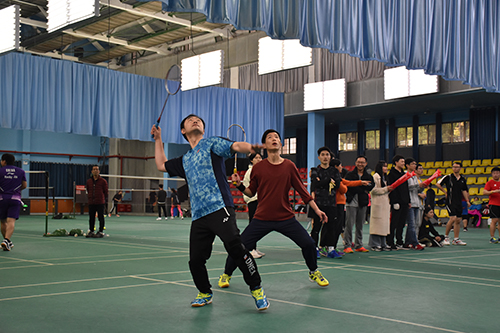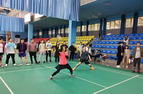 四强阶段,精彩继续。院长何旭辉和副院长易亮共同代表机关队对阵工程管理系联袂上演了一场“男双”精彩对决,起球、吊球、杀球、旋转360°回球,教师们使出浑身解数,犹如一场“饕餮盛宴”,看得观众直呼过瘾。