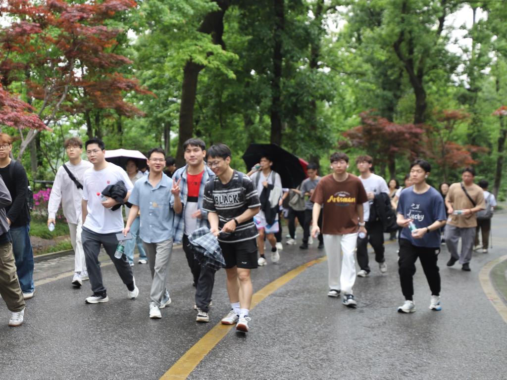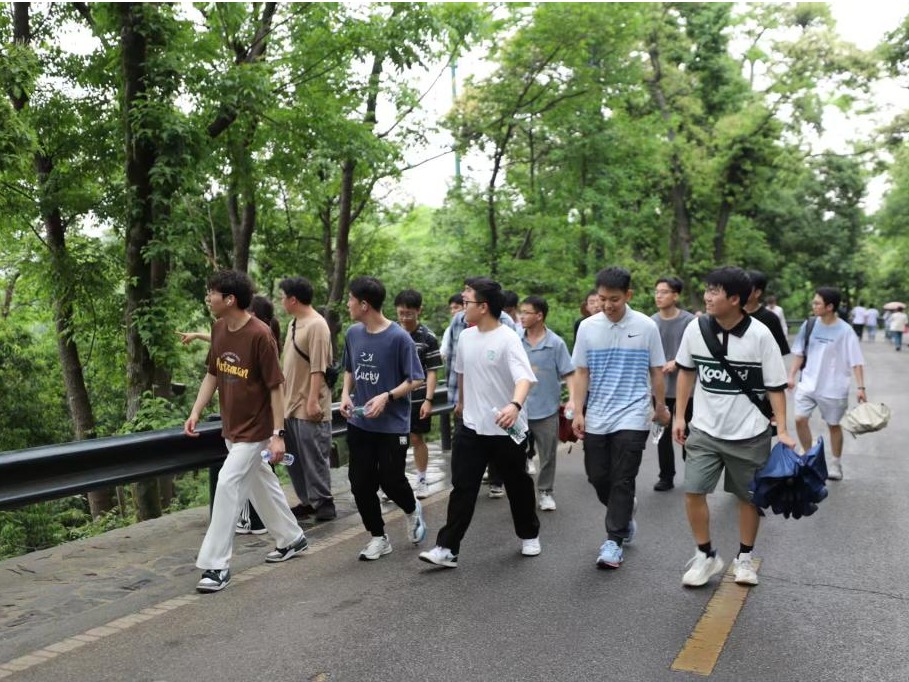 登山途中,同学们既感受到山间春意盎然的美景,更在相互扶持中体会到团队协作的力量。下午16时,全体团学干部成功登顶岳麓山电视塔。站在城市制高点俯瞰湘江两岸,于山巅处合影留念,将“会当凌绝顶”的豪情与“永远跟党走”的信念定格在镜头中。稍作休整后,队伍于17时从中南大学本部有序下山,并集体乘车返程。