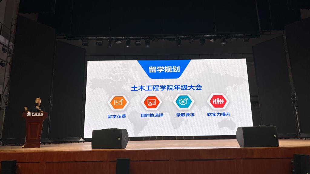 大会开篇,学院特邀中南大学校友、卓引留学创始人李纪勇先生分享留学规划。李纪勇围绕热门留学国家选择、申请核心要求及时间规划展开,结合行业经验为同学们梳理留学思路,帮助大家明确不同阶段目标,解答留学相关疑惑。此外,他还为同学们梳理了 “大二夯实专业基础、大三备战标化考试与背景提升、大四集中申请” 的阶段性目标,帮助大家避开时间规划误区。