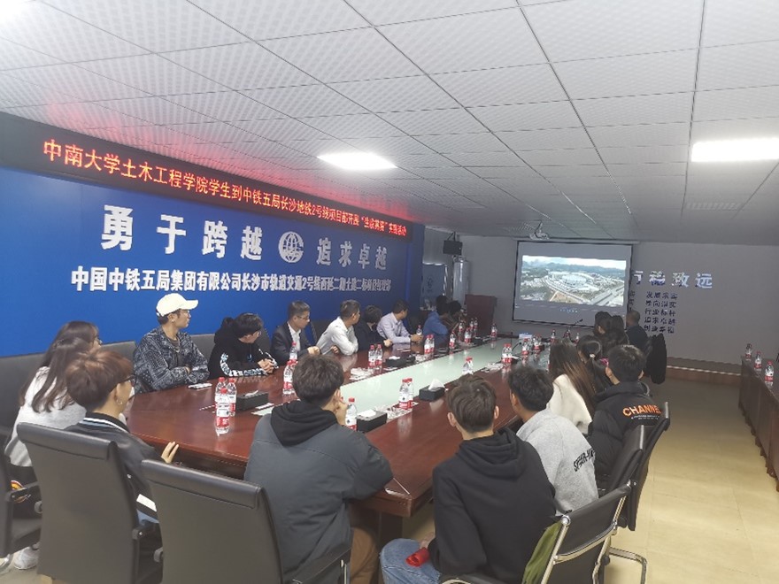 为进一步落实党的十九大精神,以立德树人为根本任务,培养德智体美劳全面发展的社会主义建设者和接班人,推动民族团结和共同进步。2021年12月4日,在学工部吾勒盼、土木院辅导员罗玲的带领下,土木院本科2020级、2021级共计17名少数民族同学前往中铁五局长沙市轨道交通2号线西延线项目开展实践活动,中铁五局人力资源部副部长何萍、二科科长尚赛、项目经理黄杉、项目总工詹享东热情接待了我校一行人。