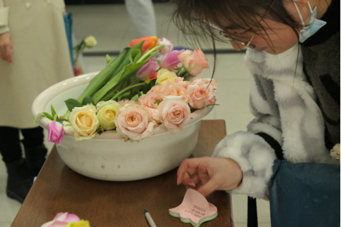 3月6日心助会成员在升华公寓32栋开展了“我手写我心”活动,参与活动的女生在便利贴上写下自己对新学期的计划与期望并收获了一朵鲜花。承载的梦想的便利贴逐渐填满空白的海报,女生们也如鲜花般笑开了颜。活动最后,百余朵鲜花均已送到女生们手中。我们以鲜花寄托温暖的关怀,真诚的祝福,让这个节日充满了爱的气息。