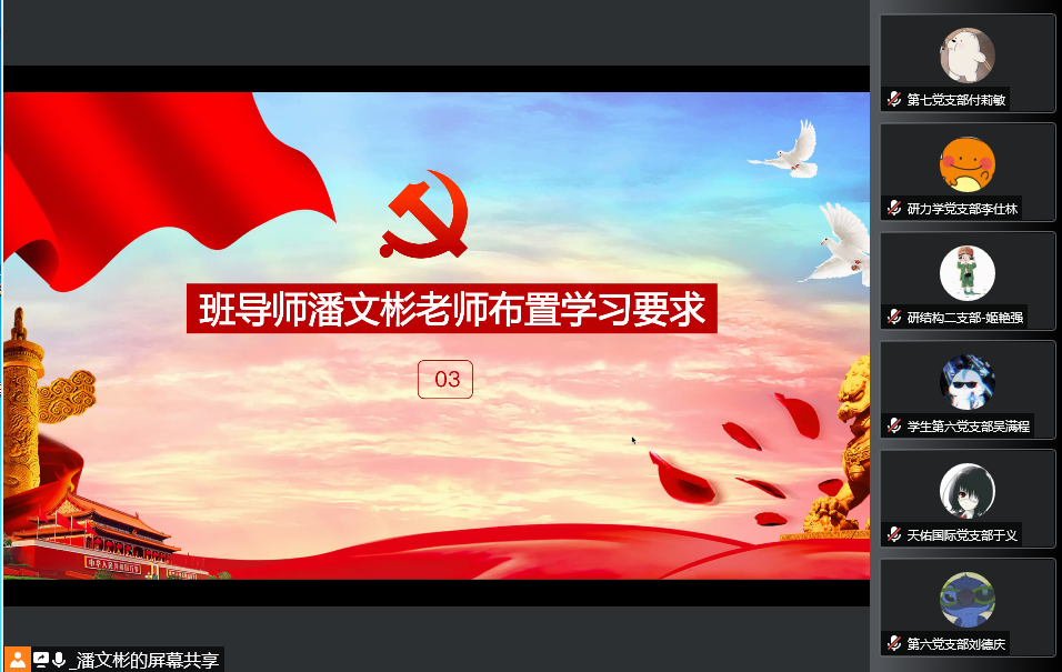 会议第三项,班导师潘文彬对学习要求和纪律要求作相关讲话,潘老师指出培训班的目的是帮助发展对象进一步掌握党的知识,提高素质,切实保证新发展党员的质量,保证党组织的先进性和纯洁性,提高党的战斗力。潘老师对网络课程的学习要求和考核方式进行讲解,并对关于党课学习中的相关问题做出解答,希望同学们顺利完成本次党校的学习,将课堂中学习到的理论知识实践到生活中去。牢记党的百年奋斗重大成就和历史经验,弘扬伟大建党精神,坚定理想理想信念,牢记初心使命。为实现第二个百年奋斗目标,实现中华民族伟大复兴的中国梦而不懈奋斗,以实际行动迎接党的二十大胜利召开。