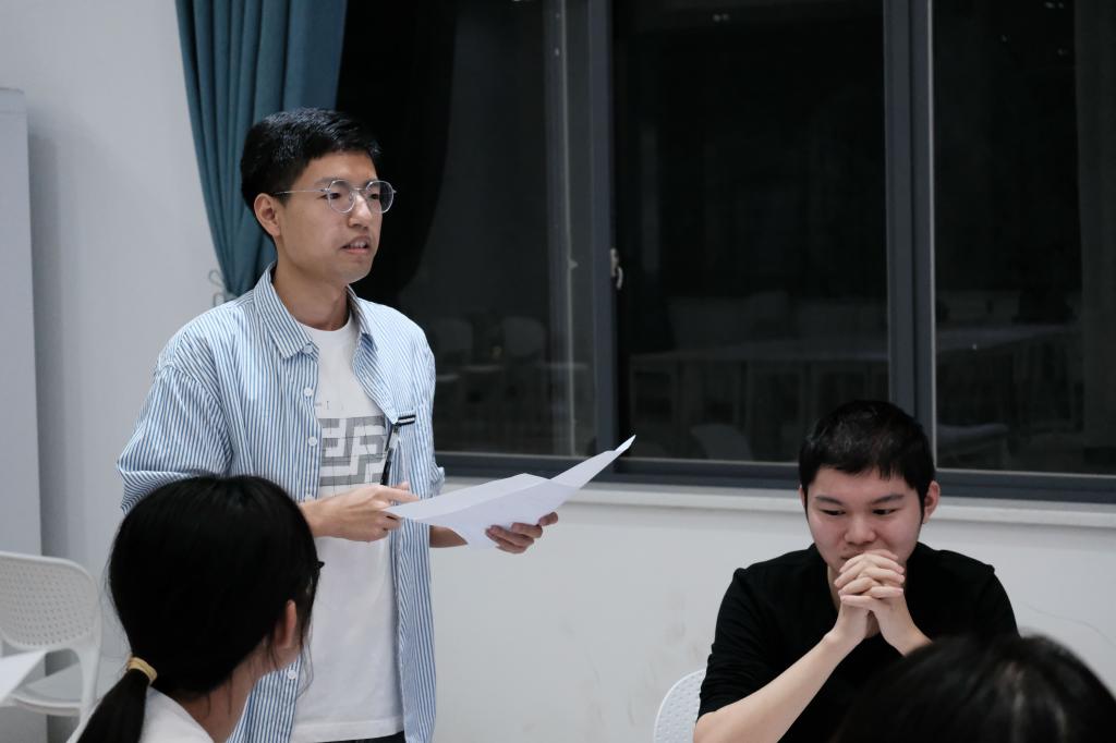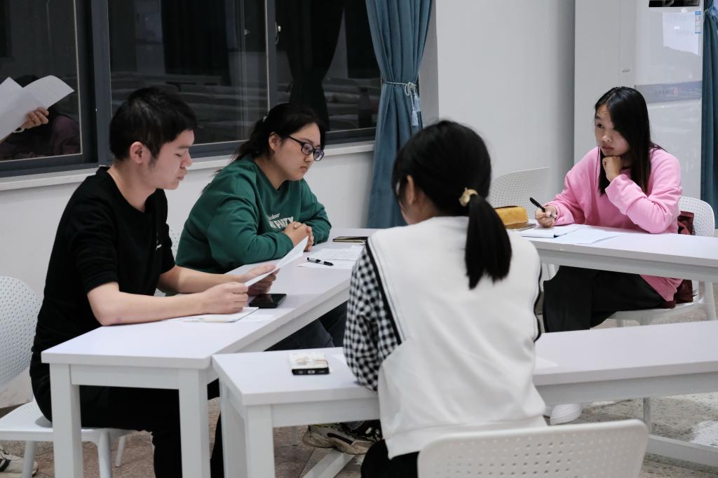 选手们依照要求提前到场签到,随后在候场区等待。比赛开始前,潘文彬老师首先发表讲话,向选手们传递经验,语言风趣消除了赛前紧张氛围。随后康佳伟同学介绍比赛流程,介绍完规则后选手进行抽签进入对应考场,在主持人引导下,先各自读题思考10分钟,并准备3分钟的发言提纲阐述自己观点,然后进行20分钟左右相关问题的讨论,讨论时间结束后,推举一名考生进行3分钟发言总结。