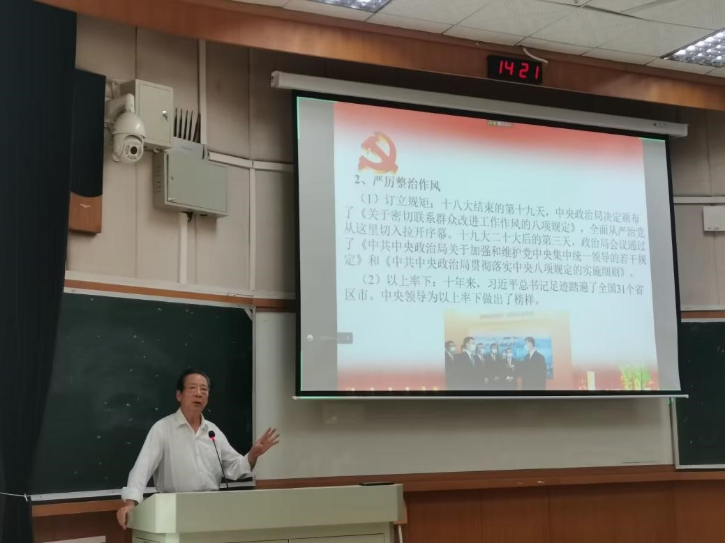 随后,张国强老师特别围绕九个方面向大家讲解了党的二十大报告,号召同学们结合新时代党的国家事业取得的伟大成就,完整准确全面学习领会党的二十大精神,深入理解内涵,精准把握外延,原原本本、逐字逐句学习党的二十大报告和党章。