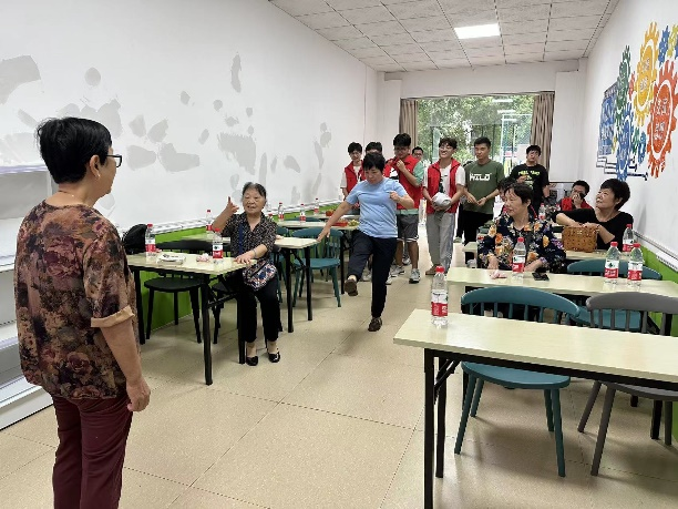 活动进行时,土木院团委、研桥梁第二党支部志愿者们分为烘焙室、棋牌室、游戏室三个志愿服务小组同时开展志愿服务工作。烘焙室里,在社工刘阿姨讲解绿豆饼制作流程后,志愿者们细心协助老干部们制作绿豆饼,以积极的行动对老干部们进行陪、答、帮、烤、递全程服务。游戏室里,志愿者们积极组织,让看图猜成语、你划我猜、知识竞答等小游戏顺利开展起来。棋牌室里,老干部们打牌时把军队事迹娓娓道来,志愿者们热情陪同,细心关注老干部们任何需求。