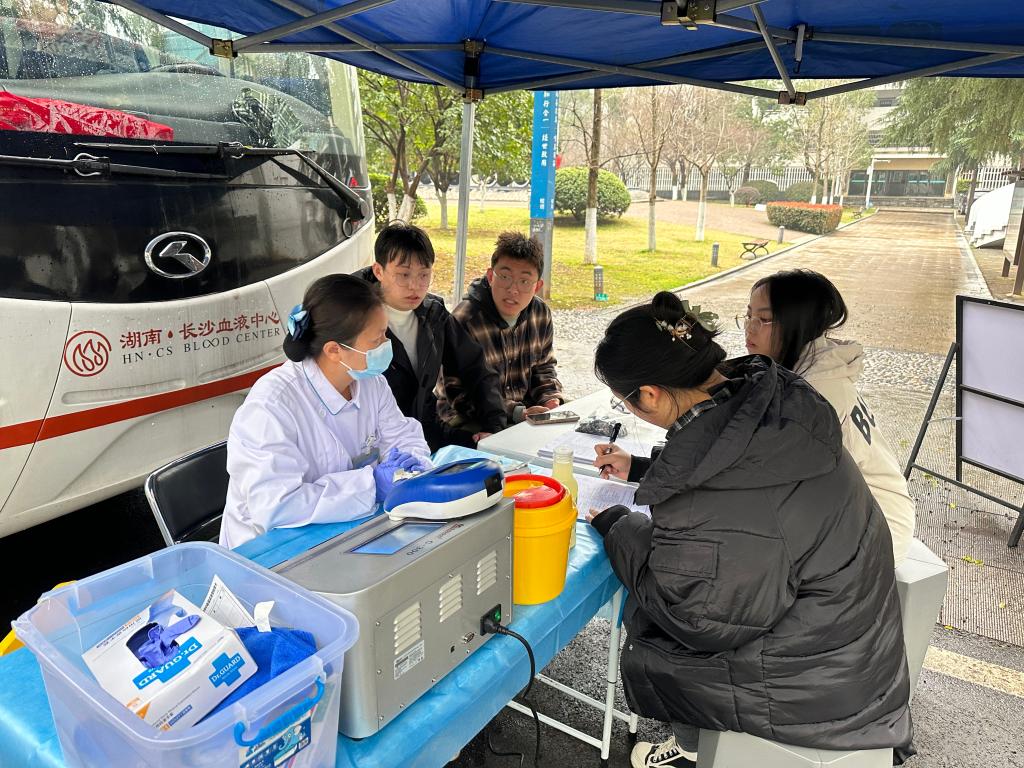 为贯彻雷锋精神,提升大学生社会责任感,新葡的京集团35222vip团委、研究生会、学生会与湖南省血液中心联合于2024年3月13日至14日在铁道校区求知路成功举办“无偿献血,传递温暖”爱心献血车进校园活动。