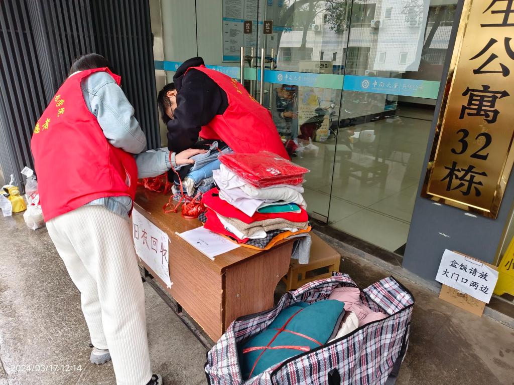 衣柜深处藏着被遗忘的旧衣,对有需要的人来说,可以带来很多温暖,3月17日,在南校区13栋,14栋,32栋,铁道校区新1舍,铁3舍楼下各设收集闲置旧衣点,开展了旧衣物回收活动,各楼栋同学积极参与,每件衣服都是同学们爱的流动。活动结束后,收集衣物总重超过100kg,由白鲸鱼旧衣服回收机构将其收走,变现金额均赠予公益组织。