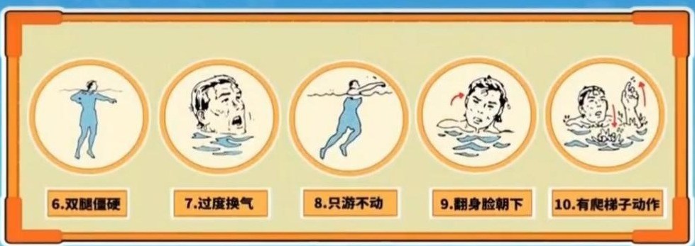(7)若在水中发现自己体力不足,无法游回池边时,及时求救。