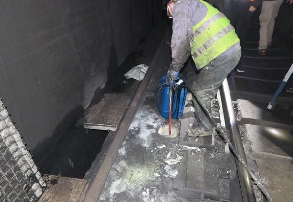 10月13日下午,调研人员与茶坞工务段开展座谈与交流活动。线路科王海波科长和桥隧科户小明科长介绍了大秦重载铁路概况和近年来在2万吨重载单元列车(轴重25吨)高频次作用下大秦线K164+000-K536+000里程内线路、桥涵、隧道和路基典型病害以及维修与养护措施和效果。重点指出了解决大秦线桥隧病害检测、服役状态监测、病害快速处置以及煤尘污染问题的迫切性。调研师生根据现场观察,结合专业知识,与工务段技术人员就重载铁路基础设施病害发生规律与检测、长期监控和预警以及病害快速修复展开了广泛而热烈的探讨。工务段刘楠高工耐心地解答了大家的疑问。