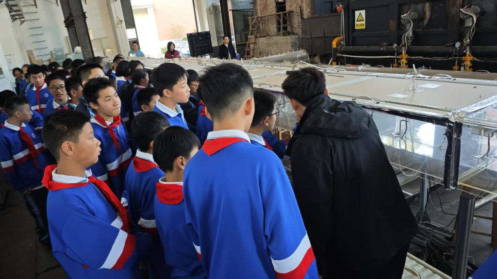 随后,消青社成员们向同学们介绍了火灾实验室的试验设施与平台。硕士生罗俊杰介绍了惠民路地下互通工程的运营通风与烟气控制试验平台,该平台研究了长江大桥与扬子江隧道间过江通道的通风与烟气控制问题,旨在为安全运营提供科学依据,并为类似工程的消防设计提供参考。硕士生饶冠杰介绍了海太过江通道工程的超长盾构隧道通风排烟与防灾疏散技术研究试验台,该平台主要用于验证特长水下隧道中纵向排烟结合大间距排烟阀方案的可行性,其研究成果将为特长水下隧道通风排烟提供实际工程案例。硕士生封世林介绍了会展西路过江通道工程缩尺寸试验台,该平台能够深入探究密集大梁对隧道通风排烟阻力的影响,为通风排烟系统效能提高中的潜在问题提供科学解释。通过一个个试验台,研究生们向中学生们展示了每一个科研项目、每一组实验数据和每一条实验结论背后的辛勤努力。这种求真务实、严谨治学的态度,为他们树立了榜样,激发了对科学探索的热情和对知识的追求。