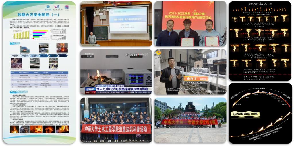 中南大学轨道交通消防安全科普教育基地自2020年成立以来,开展了消防科普活动20余次,每年共有1000余人参与活动。例如:积极响应“全国科普日”、“喜迎二十大,科普向未来”、“消防公益说”等主题活动号召,通过主题海报、宣传片、科普讲座等形式,广泛传播消防安全知识。科普基地主创的广播剧类作品、诗歌类作品、漫画类作品均在全国优秀消防科普宣传教育作品评选大赛中获奖,科普基地还在中央电视台与湖南电视台栏目中为全社会科普火灾隐患防范。此外,科普基地还组织开展了一系列面向中小学生的消防知识科普活动,培养青少年安全意识和科学思维。这些科普活动为提高全民消防安全素质,促进全民科学素养贡献了力量。