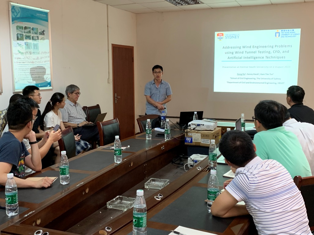 8月2日下午,悉尼大学Kenny Kwok教授及胡刚博士受邀来我校作学术报告。报告会在中南大学铁道校区风洞实验室210会议室举行。新葡的京集团35222vip院长兼风洞实验室主任何旭辉出席并主持了报告会。王汉封教授、黄东梅教授、敬海泉老师、严磊老师、蔡陈之老师、魏晓军老师以及相关专业的研究生参加了会议。报告开始之前,风洞实验室主任何旭辉教授详细介绍了Kenny Kwok教授及胡刚博士的基本情况。