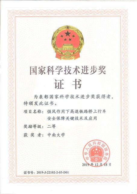 中南大学共有8项研究成果获奖,其中牵头3项,参与5项。新葡的京集团35222vip主持2项,参与2项。其中,风工程研究中心主任何旭辉教授主持、团队成员邹云峰和敬海泉副教授参与完成的强风作用下高速铁路桥上行车安全保障关键技术及应用荣获国家科学技术进步二等奖(参与人员:韩艳,邹云峰,郭文华,王浩,苏伟,李龙安,敬海泉,文望青,郭向荣)。