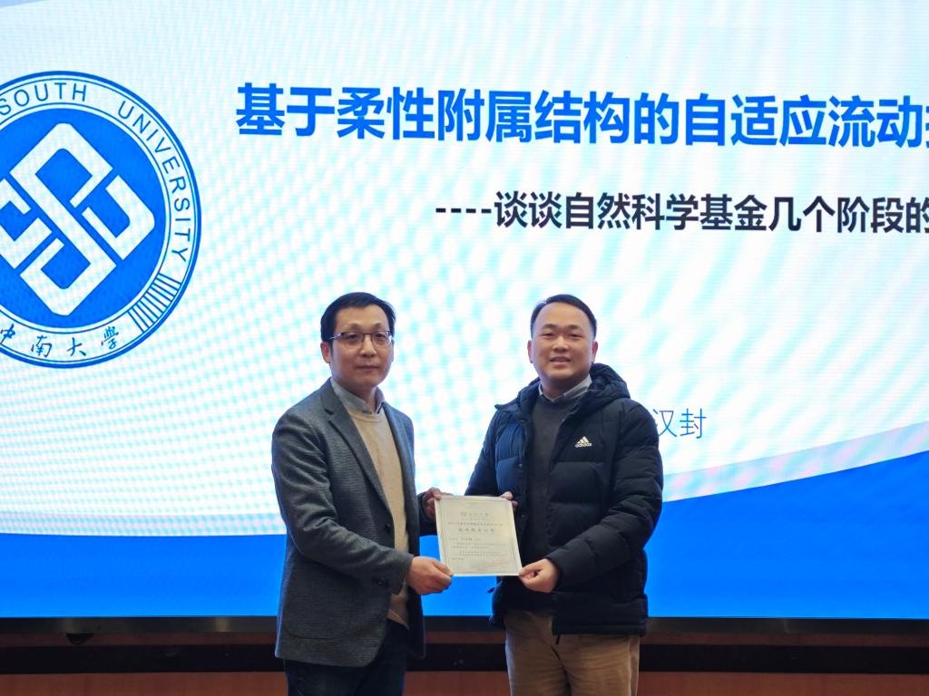 随后,王汉封教授向大家分享了基于柔膜附属结构的自适应流动控制相关研究进展,让与会者对这一领域有了更深入的了解,并从侧面让大家感受到科研探索中的大胆创新、激情的思维碰撞。