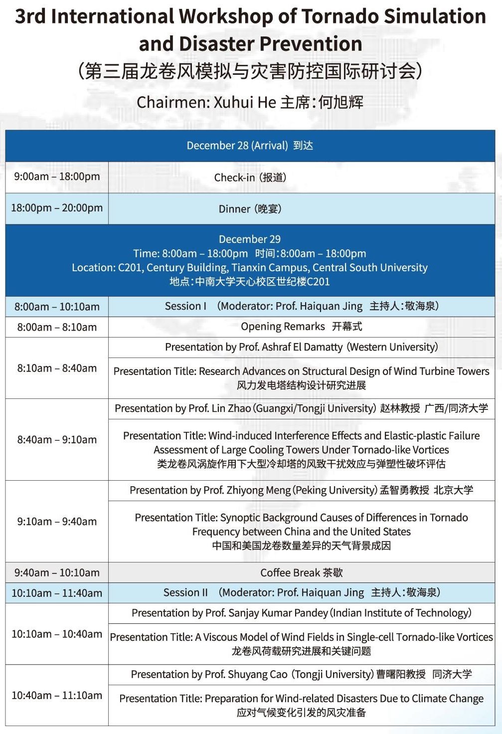 本次研讨会依托中南大学已建成的大型龙卷风风洞这一先进实验平台,该独特设施为实验研究提供了强大支撑,也是我们此前两届研讨会成功举办的重要基础。继2023年与2024年首届及第二届研讨会所积聚的强劲势头与丰硕成果,第三届盛会将继续致力于推动龙卷风科学与防灾减灾领域的前沿探讨,展示创新研究,并不断强化这一重要领域的国际合作网络。