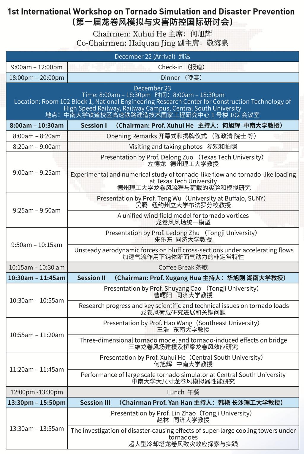 由中南大学风工程研究中心主办的“第一届龙卷风模拟与灾害防控国际研讨会(The 1st International Workshop on Tornado Simulation and Disaster Prevention )将于2023年12月22~24日,在中南大学铁道校区高速铁路建造技术国家工程研究中心1号楼102会议室召开。