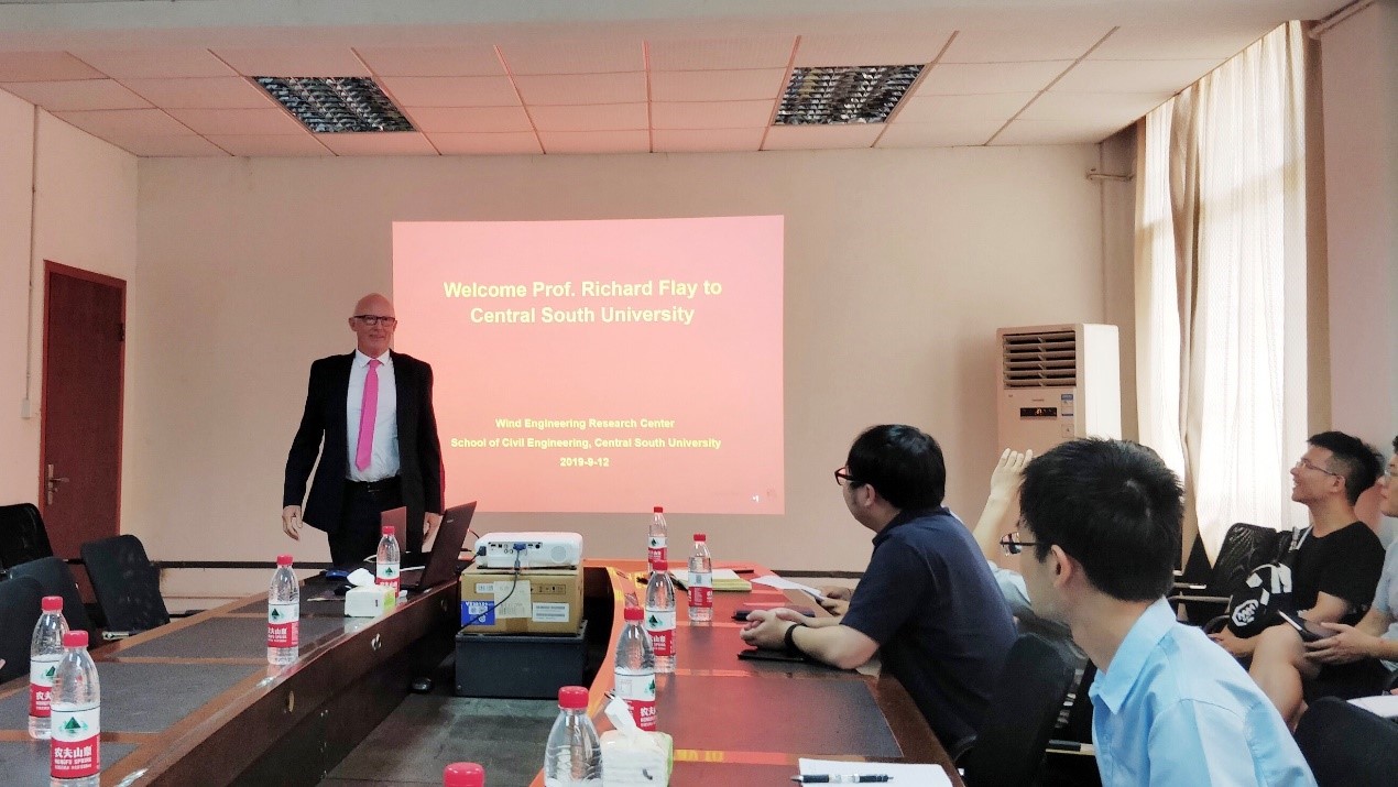 At the invitation of Professor He Xuhui from the Wind Tunnel Laboratory of Central South University, Professor Richard GJ Flay, the professor of Mechanical Engineering, Director of the Sailing Research Office of the University of Auckland, New Zealand, Chairman of the 9th Asia-Pacific Wind Engineering Conference, and Visiting Professor of Central South University, came to me our school for academic report on September 12th and conducted academic exchanges with the Central South University Wind Engineering Research Team and related professional teachers and students.