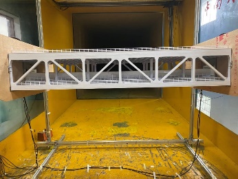 项目简介:“襄荆荆常”高铁李埠长江公铁大桥主跨1120m,主桥采用“2线铁路+4车道一级公路+6车道高速公路”的公铁双层标准建设。考虑悬索桥、斜拉桥和斜拉-悬索协作体系三种比选方案。悬索桥方案,主梁采用华伦式钢桁架梁形式,公铁两用,桥塔采用门型结构。斜拉桥型布置方案。主梁采用箱桁组合断面形式,公铁两用,桥塔采用A形结构,无下横梁。斜拉-悬索协作体系布置方案,主梁采用双层桁架加劲梁形式,公铁两用,桥塔采用门形结构。前期通过节段模型试验,对三种方案的抗风性能进行比选,后续通过大比例节段模型和全桥气弹模型对斜拉-悬索协作体系方案的抗风性能进一步开展研究。
