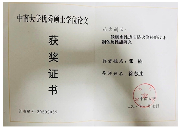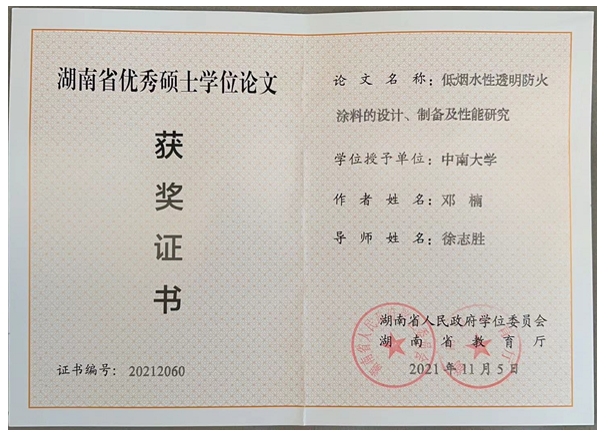 10、《低烟水性透明防火涂料的设计、制备及性能研究》