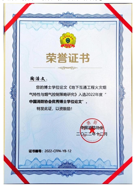 中国消防协会优秀博士学位论文 |