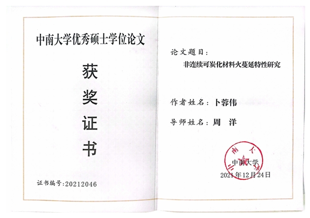 中国消防协会优秀硕士学位论文 |