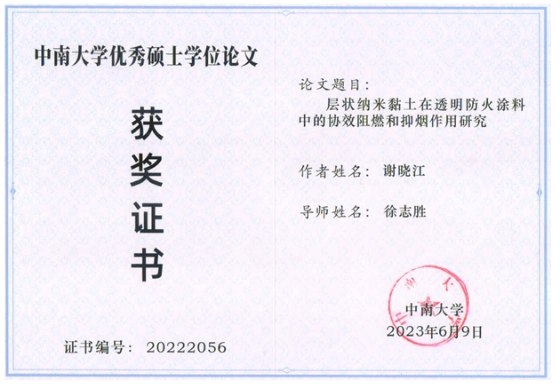 9、《层状纳米黏土在透明防火涂料中的协效阻燃和抑烟作用研究》