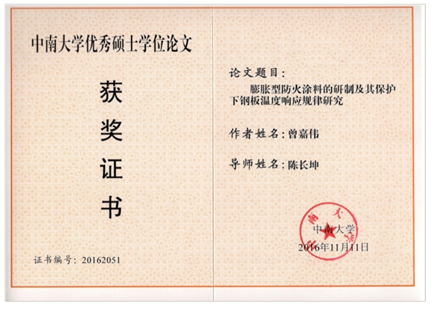3、《膨胀型防火涂料的研制及其保护下钢板温度响应规律研究》