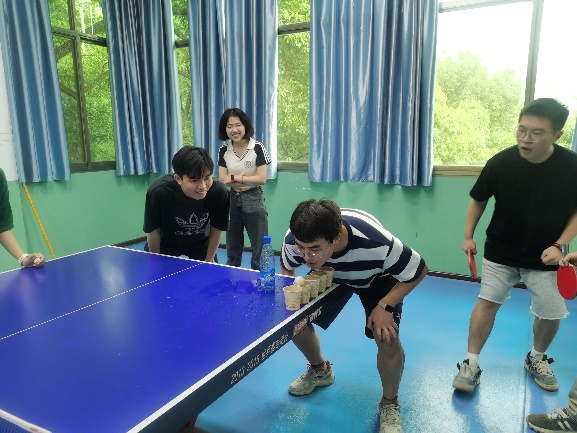 在紧张激烈的男单、女单以及混双项目结束后,轻松的趣味赛拉开了帷幕,参赛选手五人一组运用各种工具接力,齐心协力将乒乓球送至终点。观众的加油呐喊声此起彼伏,选手的偶然失误成为了焦点,让现场欢声笑语不断。