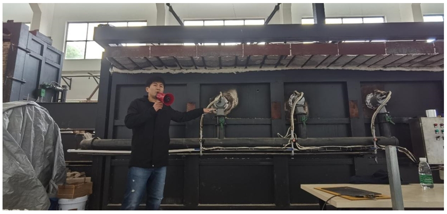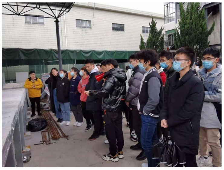 大型结构抗火实体试验平台-卧式火灾试验炉试验平台由消青社硕士生张晨曦、倪洲为2020级学生们进行讲解。卧式火灾试验炉试验平台可用于研究高温条件下构件耐火极限及温度场的分布规律,为装配式结构的火灾后性能评估以及修理加固提供理论依据。