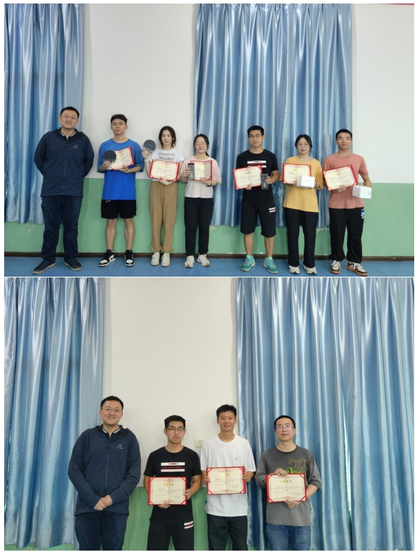 经过三小时的精彩角逐,最终由曾文欣、应后淋夺得男女混双冠军,易令泓、王吉祥摘得混双亚军,戴梦婷、倪洲获得混双季军;徐童、周洋副教授、应后淋分别获得男单冠亚季军;黄丹蓉、杨倩、易令泓分别获得女单冠亚季军。比赛结束后,消防工程系周洋副教授、王峥阳老师为获奖选手颁发了奖状与奖品,并合影留念。比赛有输赢,青春无胜负。此次师生交流赛充分展现了师生们奋力拼搏的体育精神,以及昂扬向上的精神面貌。让师生们在学习科研之余,既锻炼了身体,又促进了交流,进一步加深了师生情谊。