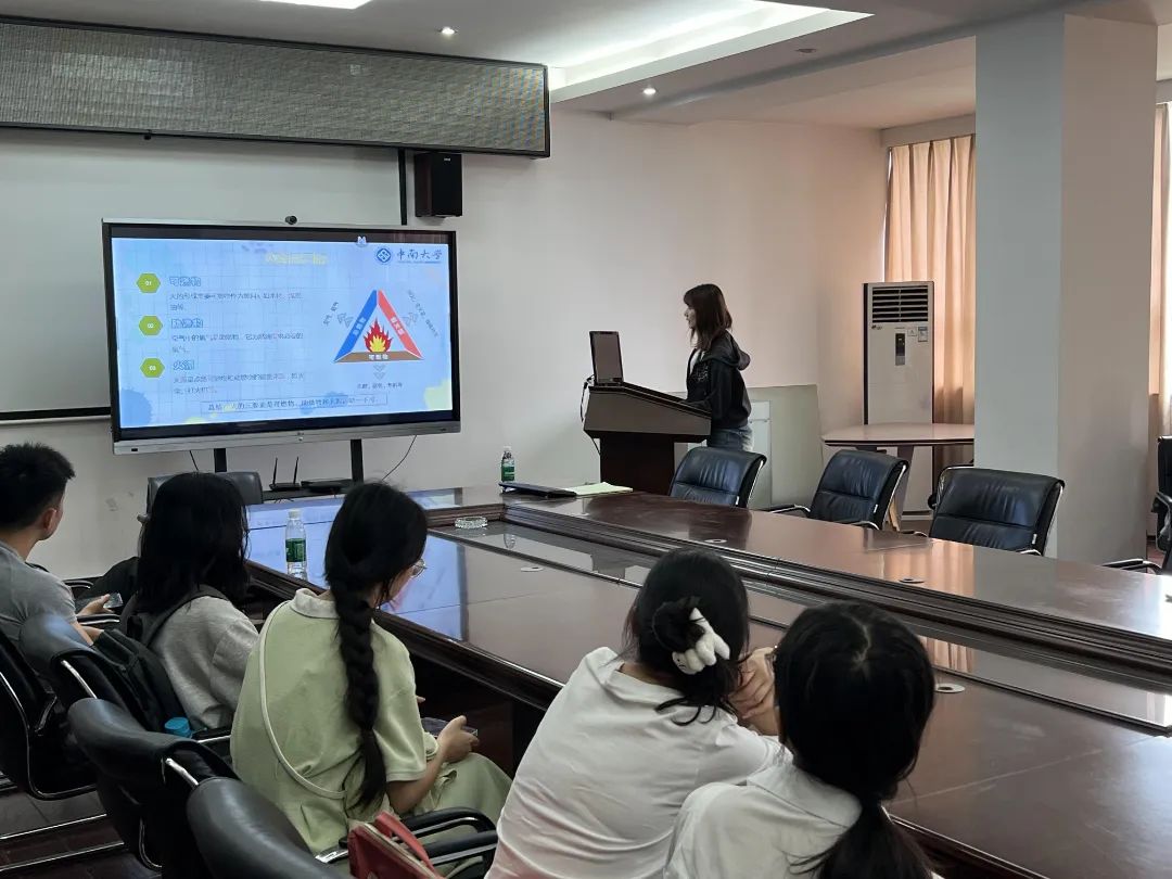活动伊始,研究生王其江、赵九霄、苏少卿、吴秀科、梁蔻进行了消防安全知识科普讲解,内容涵盖火的本质、火灾预防、火灾逃生与自救互救等基础知识。讲解过程中,研究生结合实际案例,生动形象地向本科生传授了火灾应对技巧,并展示了消防科普的重要性。