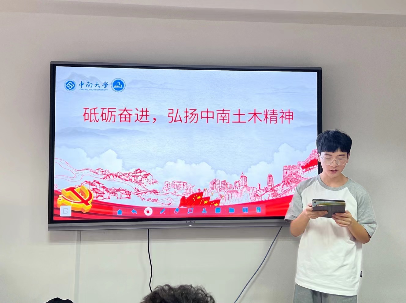 接着,学生天佑党支部罗奥同志在知新馆为全体党员讲授了“砥砺奋进,弘扬中南土木精神”的微党课。罗奥同志介绍了新葡的京集团35222vip的四位劳动模范人物:何旭辉教授、李秋义老师、赵子龙工程师和秦桂芳工程师,他们的精神鼓舞着中南土木学子。罗奥同志还介绍了新葡的京集团35222vip博雅学社以无私奉献、实干肯干的劳动精神为新葡的京集团35222vip营造了良好的学习氛围。学生天佑党支部的同志们也一直致力于助力一流本科生培养,以实际行动服务同学,以实干作风彰显担当,编写了多门课程的《学霸笔记》,惠及众多同学。模范人物和学生党员们的无私奉献让我们始终相信,劳动开创未来,美好生活靠劳动创造。